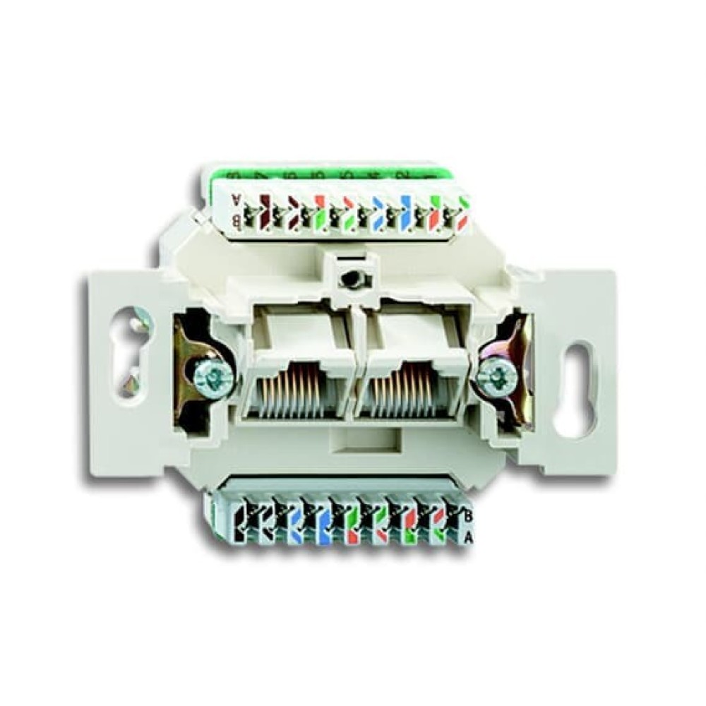 2CKA000230A0400 Механизм 2-постовой компьютерной/телефонной розетки, 8/8 полюсов, раздельно, RJ45, категория 6е, неэкранированная, до 250 МГц