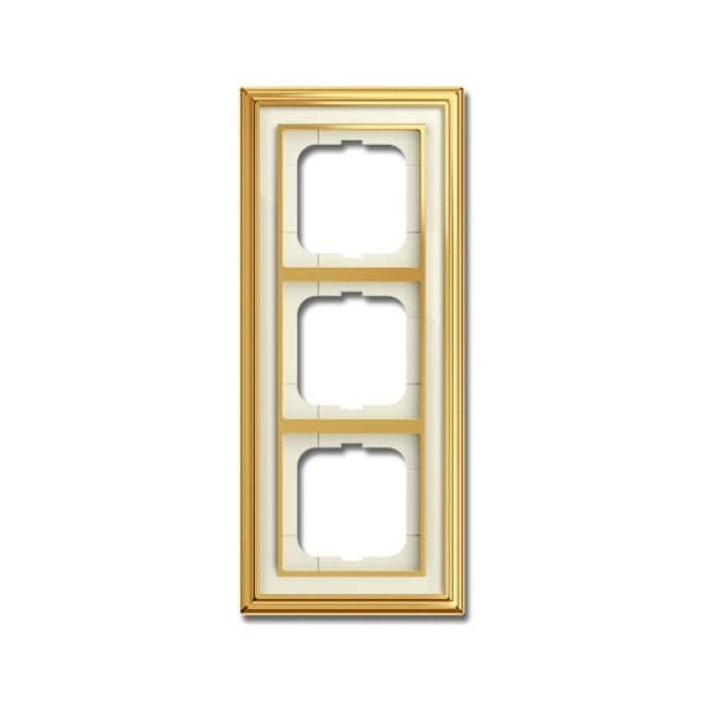 2CKA001754A4562 Рамка 3-постовая, серия Династия, Латунь полированная, белое стекло