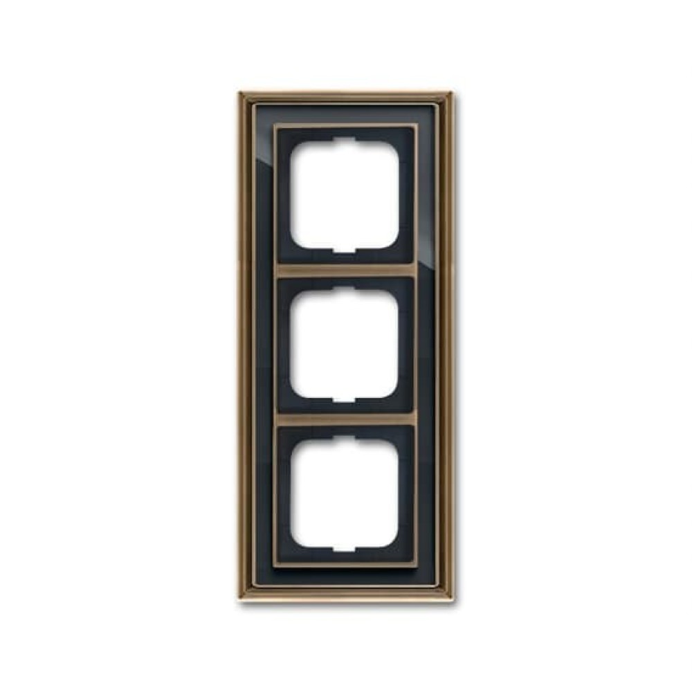 2CKA001754A4587 Рамка 3-постовая, серия Династия, Латунь античная, черное стекло