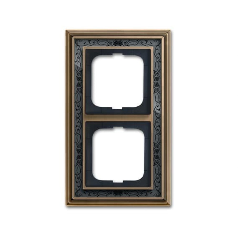 2CKA001754A4596 Рамка 2-постовая, серия Династия, Латунь античная, черная роспись