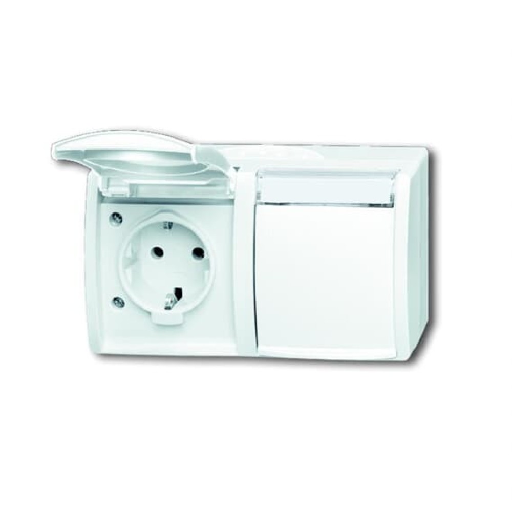 2CKA002084A0715 Розетка SCHUKO 16А 250В IP44, двойная, горизонтальная, с полем для надписи, для открытого монтажа, серия ocean, цвет альпийский белы