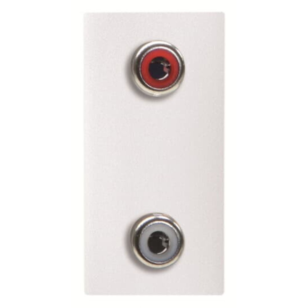 | Длинное описание: | Color: White. Front: 2x RCA connectors (Red / White) Rear: screw terminals (4 wires) Size: 1 module. |