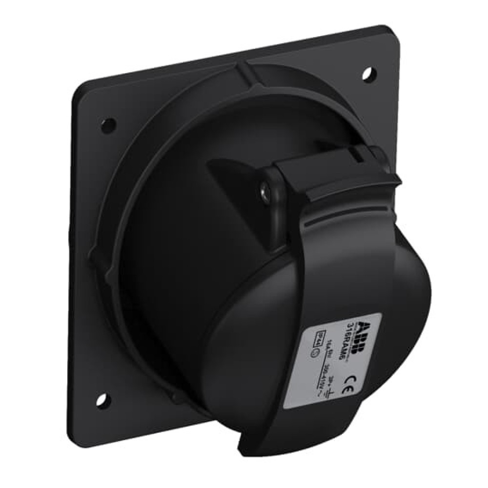 2CMA100544R1000 Розетка панельная с угловым минимальным фланцем 316RAM6B, 16A, 3P+E, IP44, 6ч, черный, для шоу-бизнеса