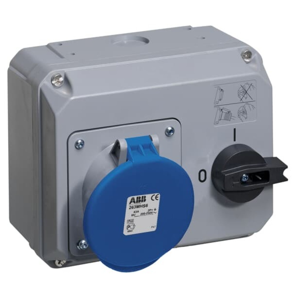 2CMA167715R1000 Розетка с выключателем и механической блокировкой 263MHS6, 63A, 2P+E, IP44, 6ч