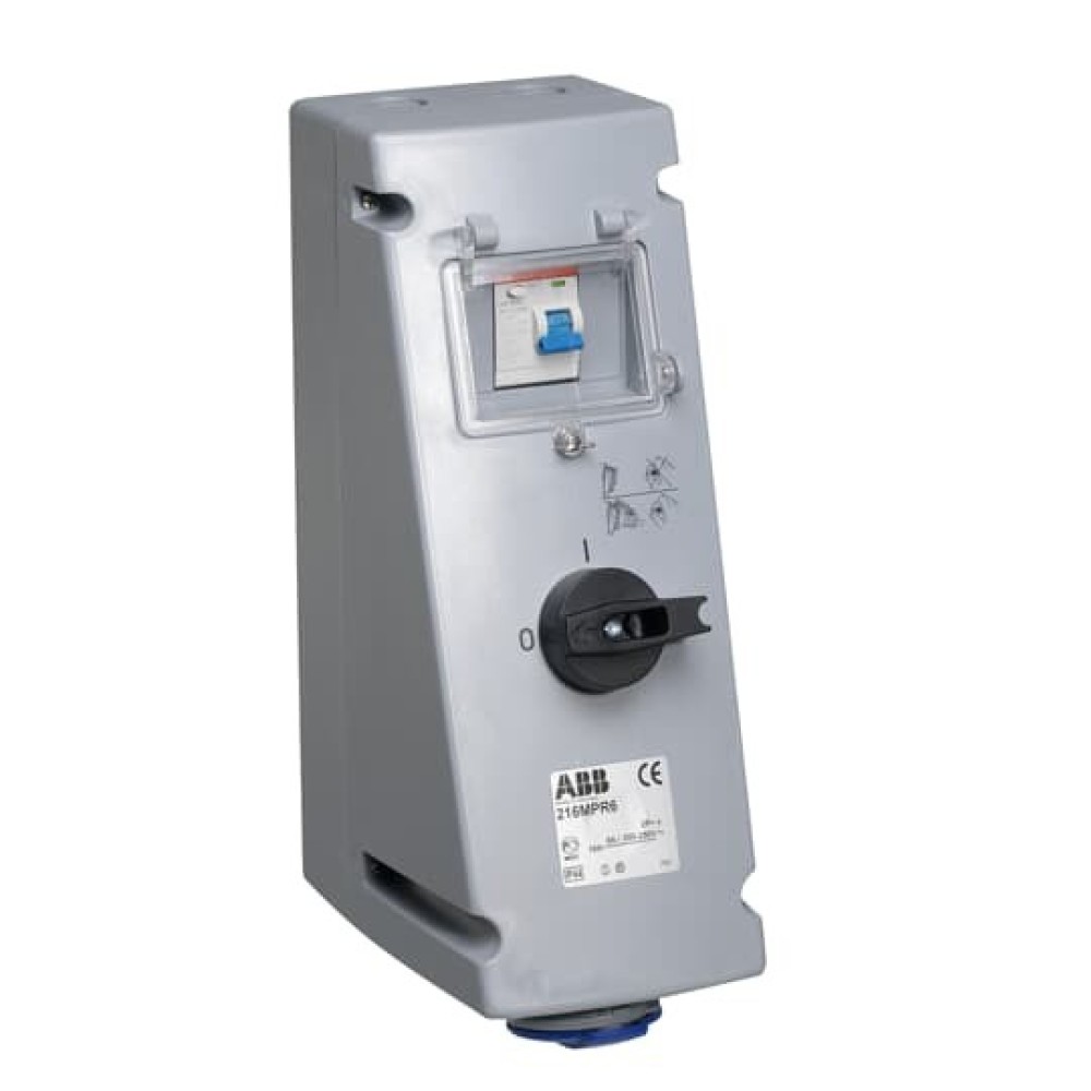 2CMA167756R1000 Розетка с рубильником, механической блокировкой и УЗО 216MPR6, 16А, 2Р+Е, IP44, 6ч