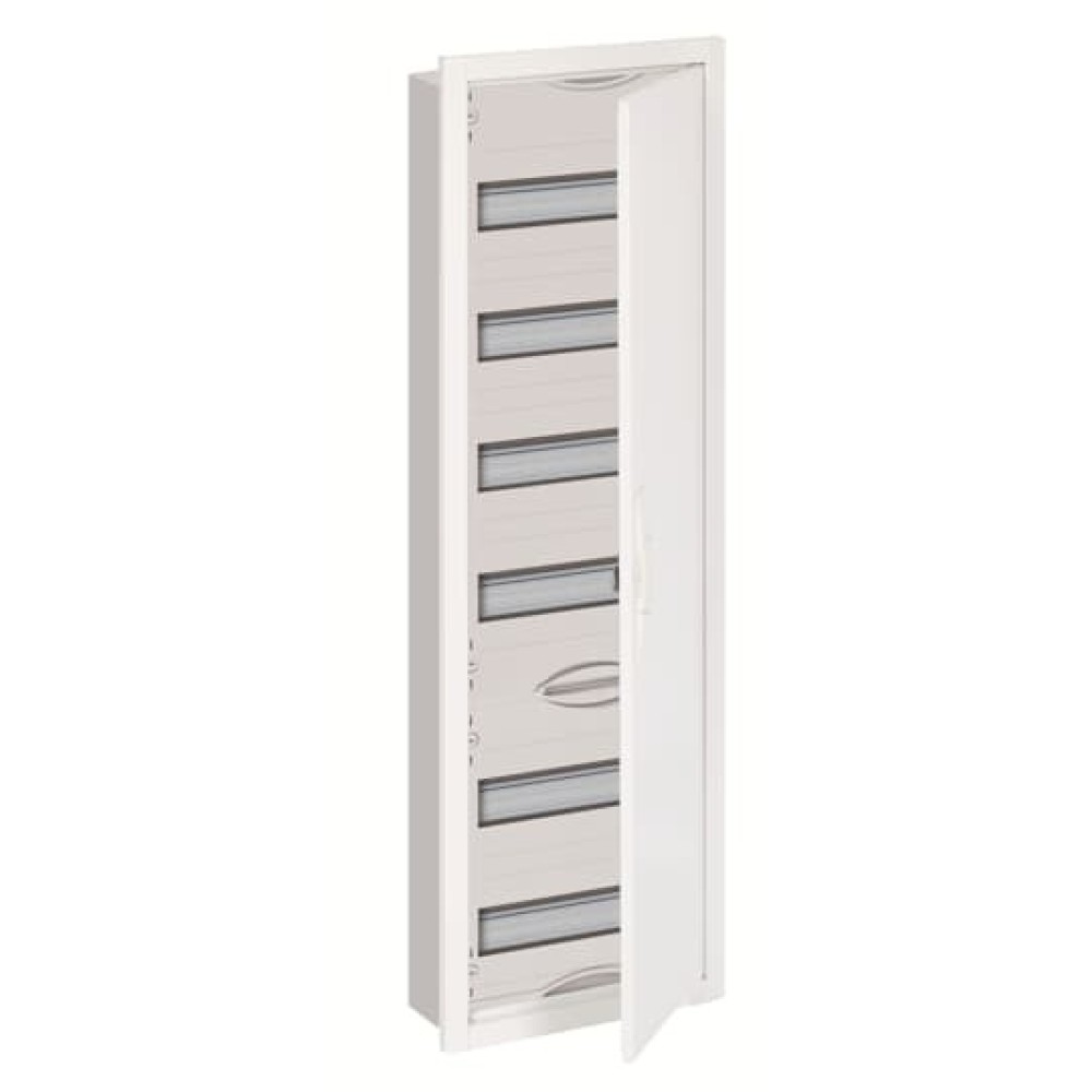 | Длинное описание: | compact distribution boards, series U, partly assembled cabinet, for the internal use, with closed doorframe and door, class of protection II (double insulated), in combination with earthing set (accessory) we can achieve protection class 1, degree of protection IP31, applicable standards: EN 61439-1, EN 61439-3, Rated operational voltage 400V AC 50/60 Hz, rated current 125 A, powder-coated, in RAL 9016, enclosure out of sheet steel, metal door , door out of sheet steel, in RAL 9016, with Standard closure, door opening angle 130 degree, door hinge right or left, cable entry on top via nippel flange included, on bottom via flange opening pre-punched, dimensions in mm (H x W x D): 984 x 310 x 120, Shutter frame dimensions in mm (H x W x D): 994 x 354 x 27, Ratchet unit 6 GU, panel width 1, 6-rows, Space units 72, Row distance in mm: 125, covers out of Plastic, 90 degree press and turn closure, RAL 7035, with N/PE Quick-terminal, cable fastening rail integrated, expanded with distributor fields, device support removable |